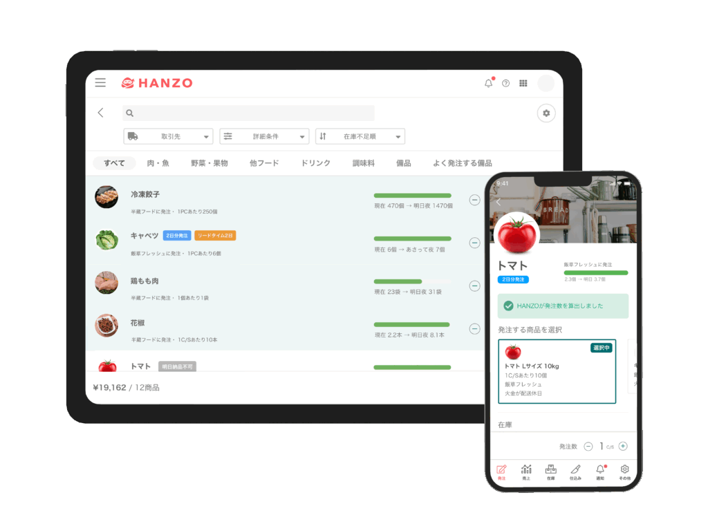 「HANZO 自動発注」はAIが自動で適正量を算出するため発注業務の負担が削減されることに加え、新任店長や異動直後でも迷わない、店舗ごとの最適な発注を実現します。